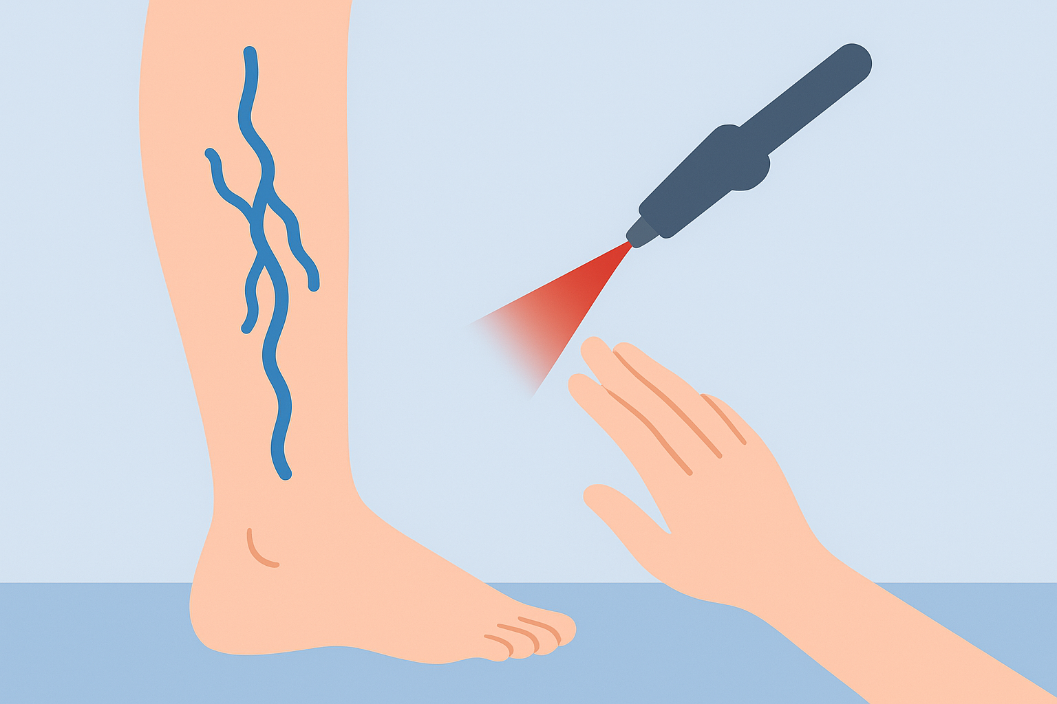 1. Damar Haritalama (Görüntüleme): Öncelikle özel bir kızılötesi damar görüntüleme cihazı kullanılarak cilt altındaki kılcal damar ağı haritalanır. Bu sayede gözle görülen varisleri besleyen daha derindeki “feeder” damarlar tespit edilir. Bu adım, tedavinin doğru hedefe yönelmesini ve gelecekte varisin tekrarlama riskinin azalmasını sağlar.